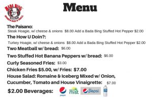 Menu- Please notify us if you have a food allergy
